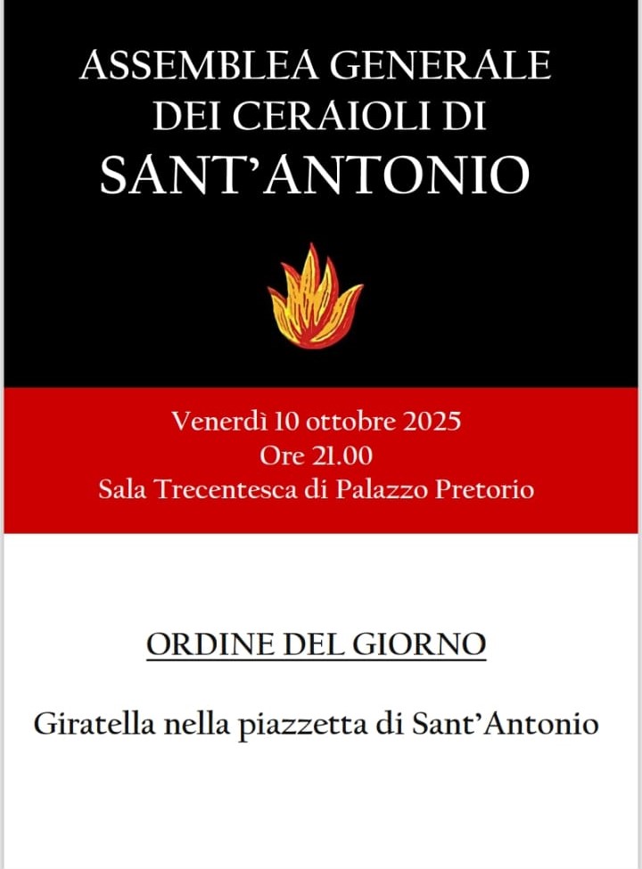 10 OTTOBRE 2025 ORE 21.00 ASSEMBLEA GENERALE DEI SANTANTONIARI